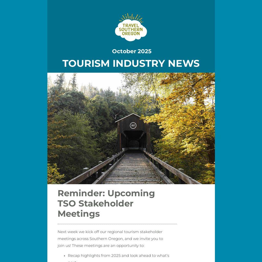 Next week we kick off our regional tourism stakeholder meetings across Southern Oregon, and we invite you to join us! These meetings are an opportunity to: