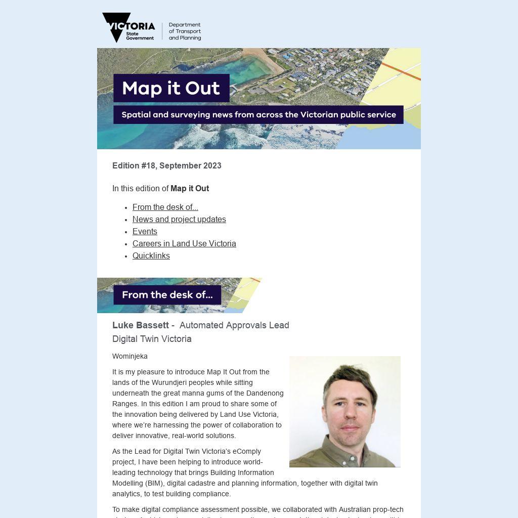 It is my pleasure to introduce Map It Out from the lands of the Wurundjeri peoples while sitting underneath the great manna gums of the Dandenong Ranges. In this edition I am proud to share some of the innovation being delivered by Land Use Victoria, where we’re harnessing the power of collaboration to deliver innovative, real-world solutions.