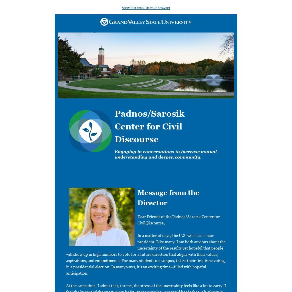 Dear Friends of the Padnos/Sarosik Center for Civil Discourse,