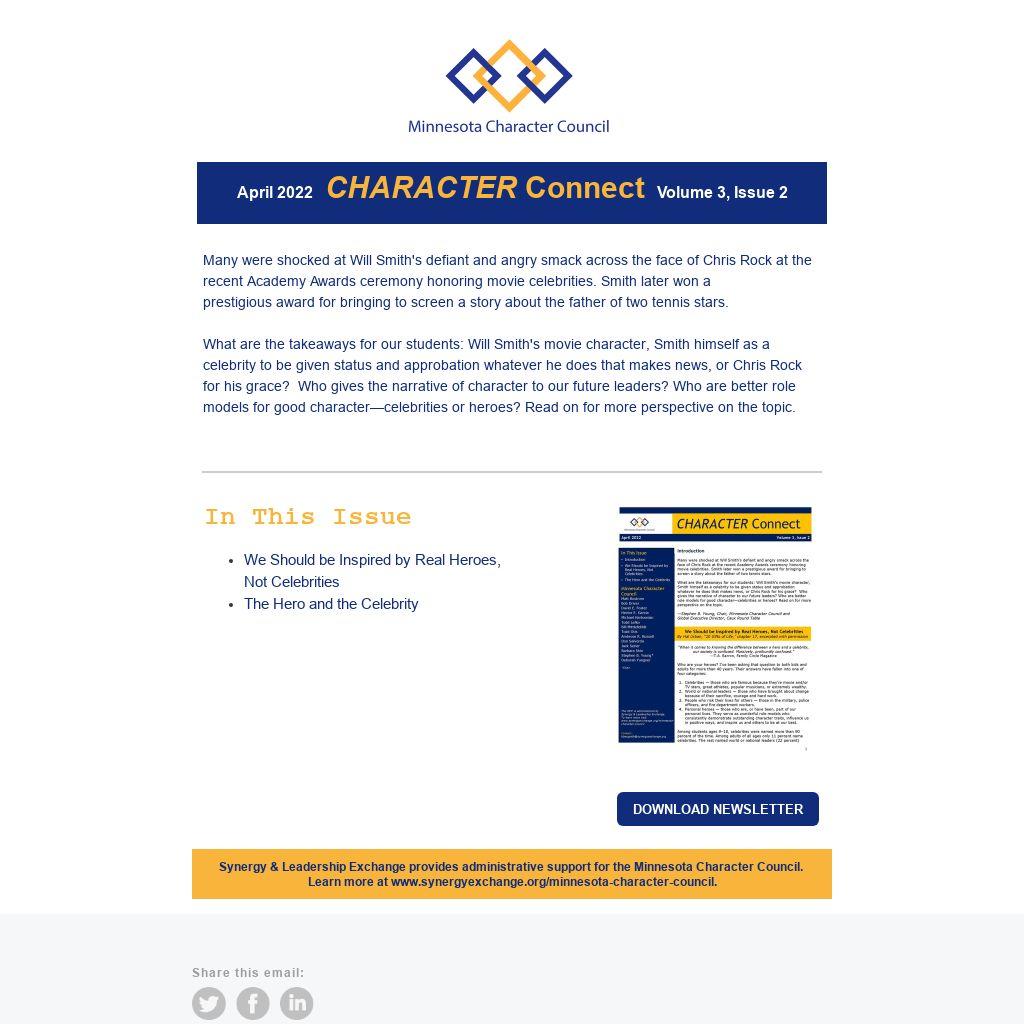 What are the takeaways for our students: Will Smith's movie character, Smith himself as a celebrity to be given status and approbation whatever he does that makes news, or Chris Rock for his grace? Who gives the narrative of character to our future leaders? Who are better role models for good character—celebrities or heroes? Read on for more perspective on the topic.