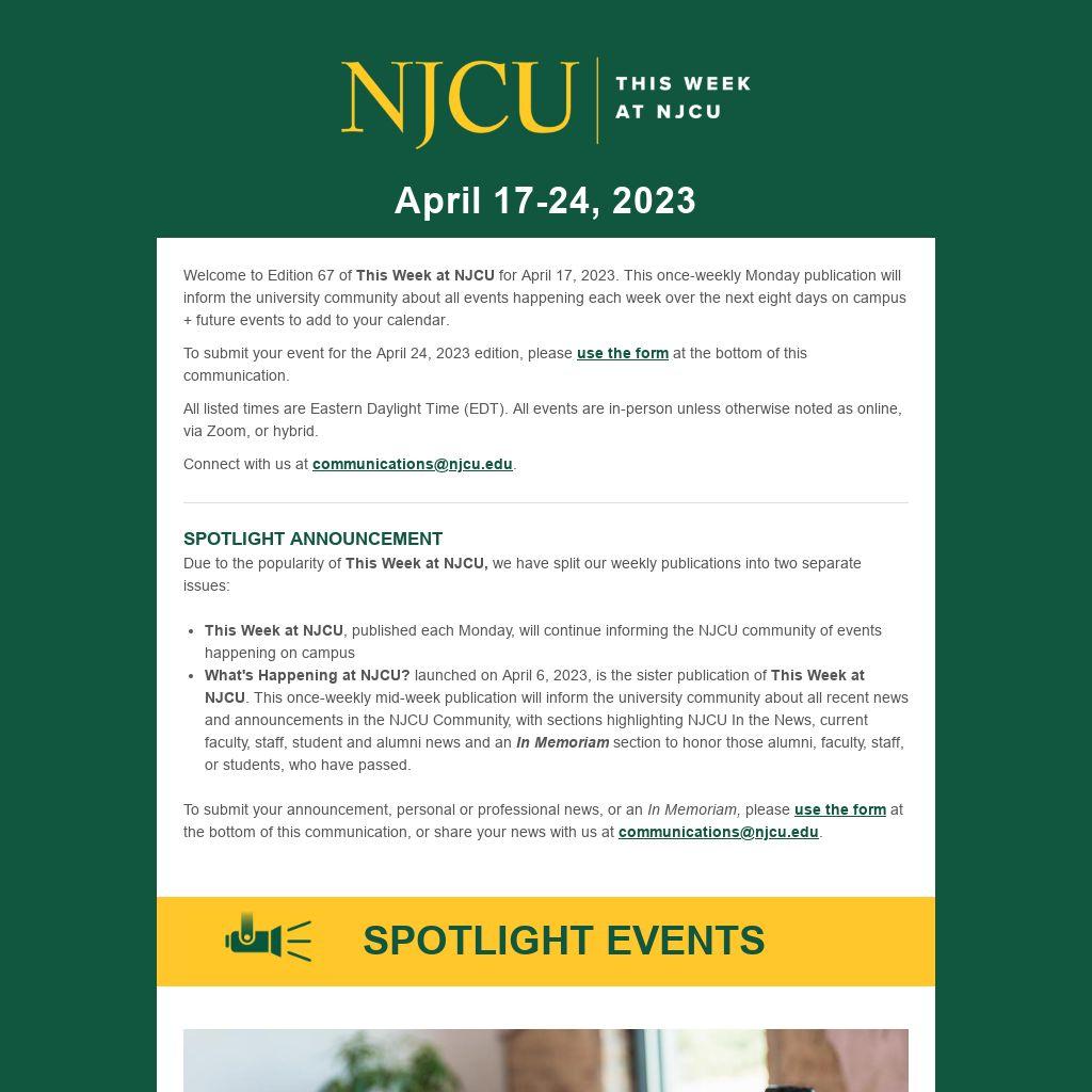 Due to the popularity of This Week at NJCU, we have split our weekly publications into two separate issues: