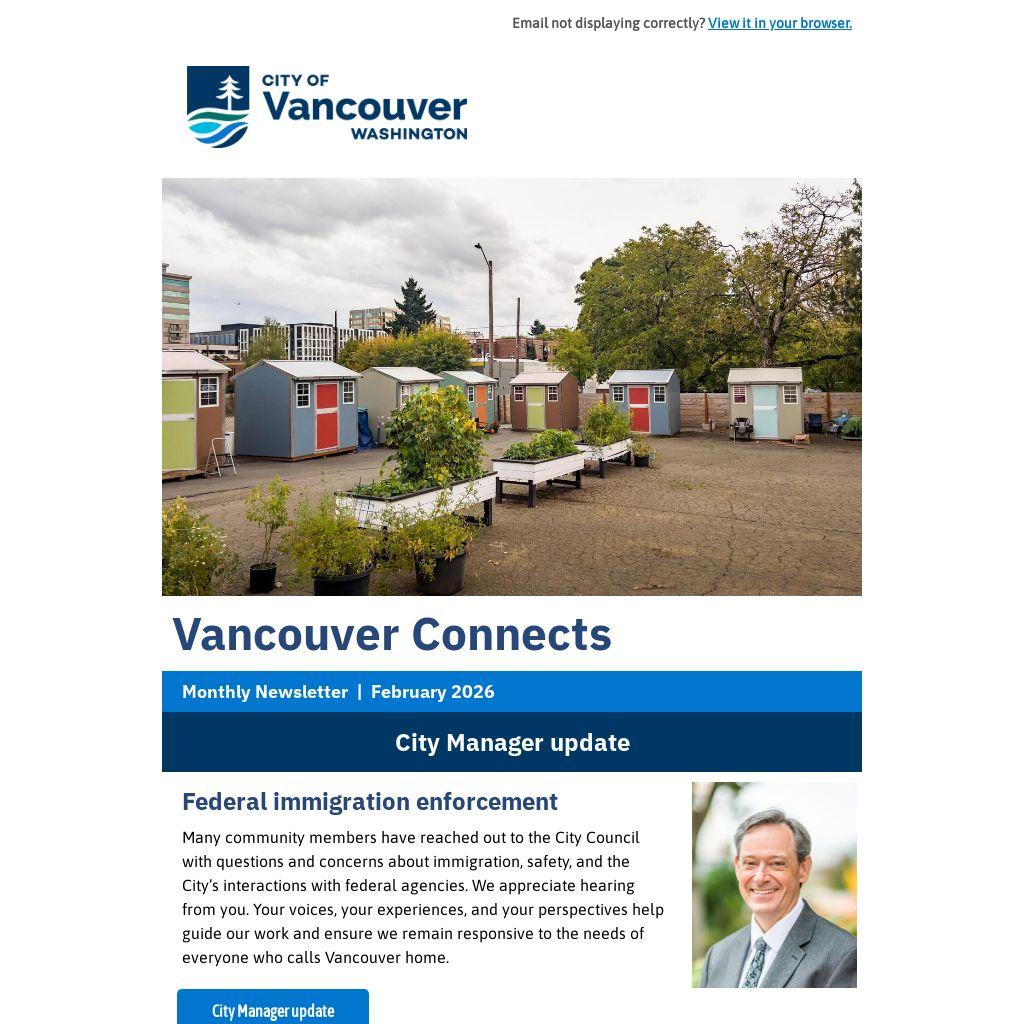 Many community members have reached out to the City Council with questions and concerns about immigration, safety, and the City’s interactions with federal agencies. We appreciate hearing from you. Your voices, your experiences, and your perspectives help guide our work and ensure we remain responsive to the needs of everyone who calls Vancouver home.