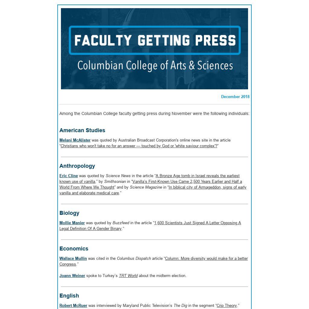 Columbian College of Arts and Sciences 801 22nd St. NW