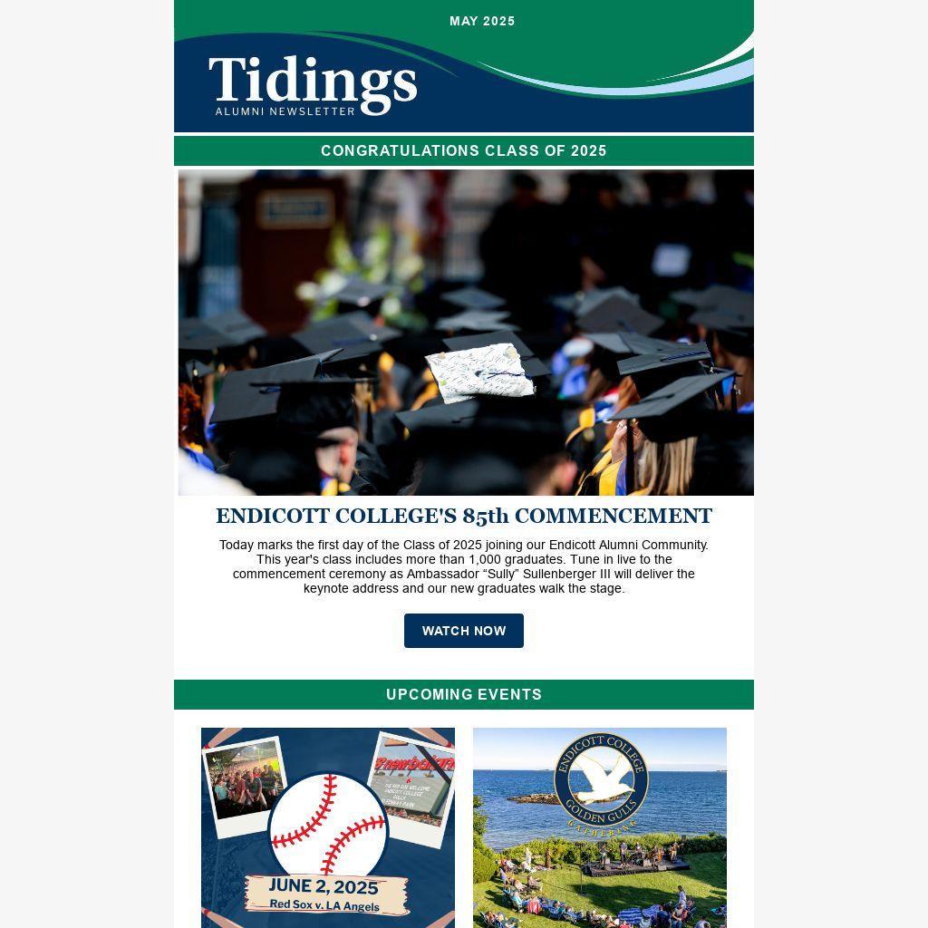 Today marks the first day of the Class of 2025 joining our Endicott Alumni Community. This year's class includes more than 1,000 graduates. Tune in live to the commencement ceremony as Ambassador “Sully” Sullenberger III will deliver the keynote address and our new graduates walk the stage.