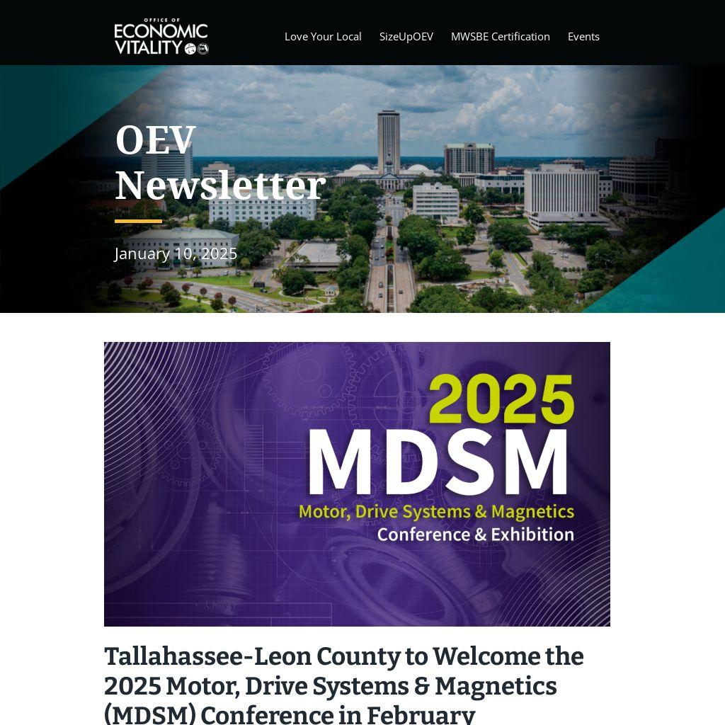 Delve into past issues of the OEV Newsletter to catch up on updates, insights, economic development initiatives, programs, and opportunities in Tallahassee-Leon County!