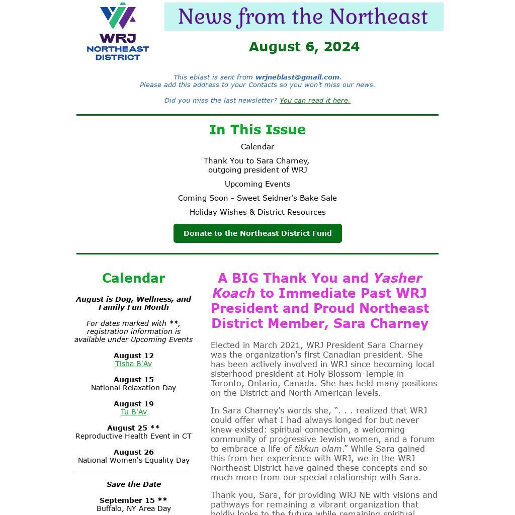 A BIG Thank You and Yasher Koach to Immediate Past WRJ President and Proud Northeast District Member, Sara Charney |