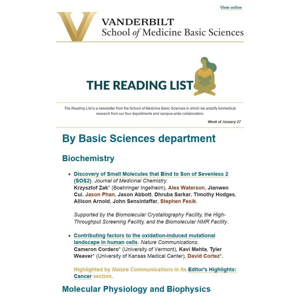 The Reading List is a newsletter from the School of Medicine Basic Sciences in which we amplify biomedical research from our four departments and campus-wide collaborators.