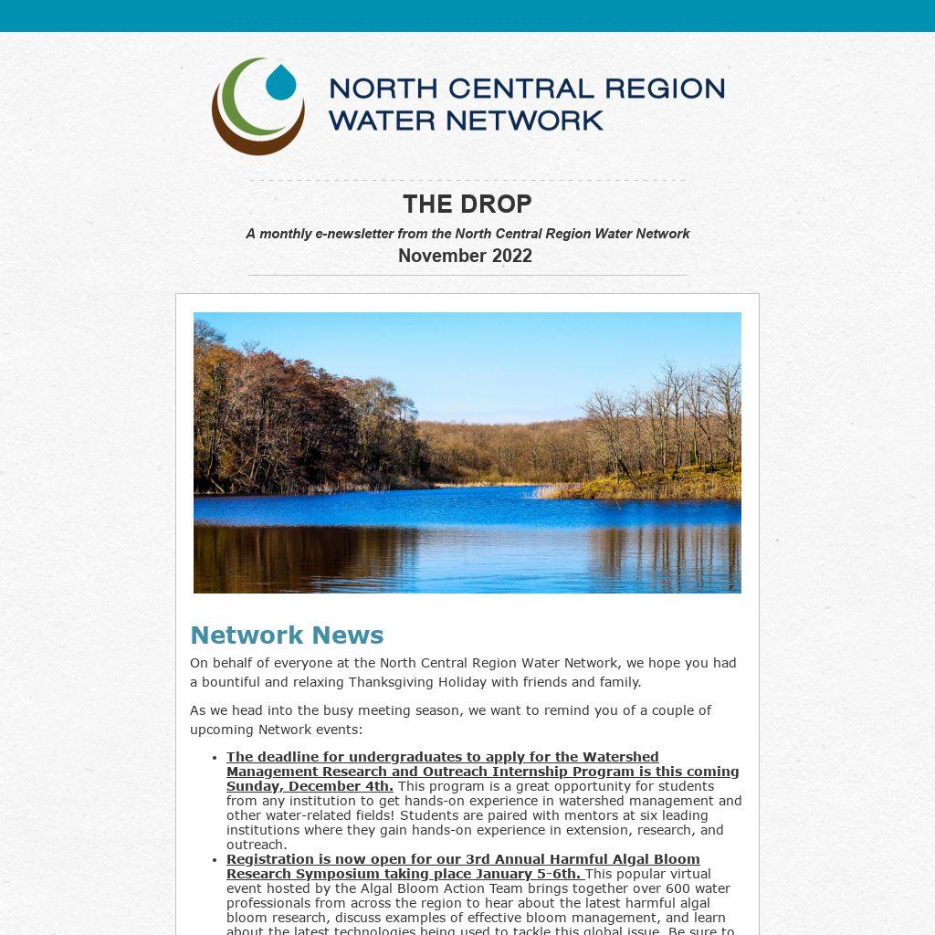 A monthly e-newsletter from the North Central Region Water Network November 2022