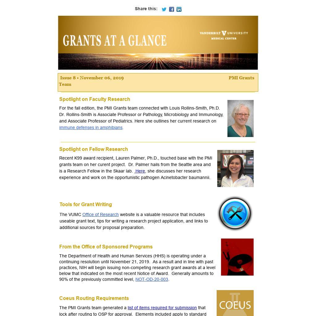 The VUMC Office of Research website is a valuable resource that includes useable grant text, tips for writing a research project application, and links to additional sources for proposal preparation.