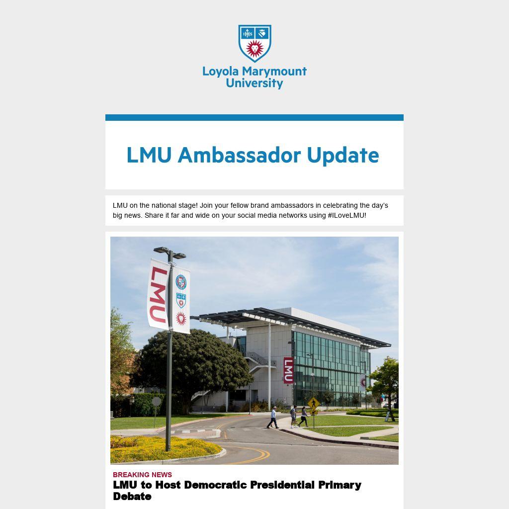 LMU on the national stage! Join your fellow brand ambassadors in celebrating the day’s big news. Share it far and wide on your social media networks using #ILoveLMU!