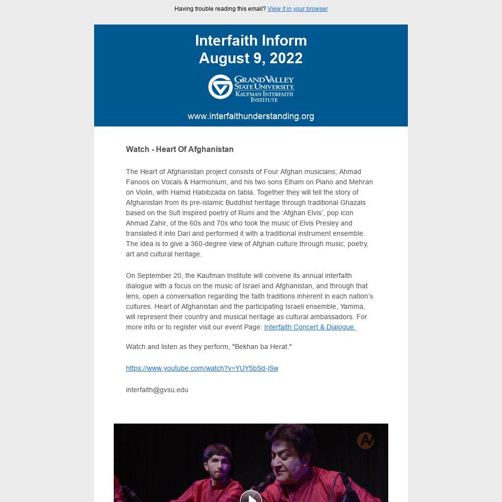 On September 20, the Kaufman Institute will convene its annual interfaith dialogue with a focus on the music of Israel and Afghanistan, and through that lens, open a conversation regarding the faith traditions inherent in each nation’s cultures. Heart of Afghanistan and the participating Israeli ensemble, Yamma, will represent their country and musical heritage as cultural ambassadors. For more info or to register visit our event Page: Interfaith Concert & Dialogue