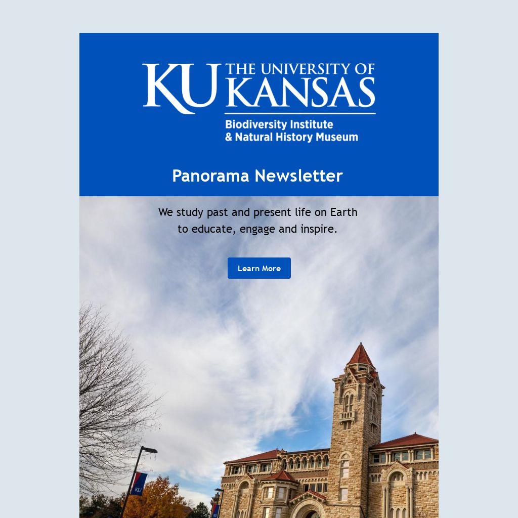 I am pleased to introduce you to the updated Panorama Newsletter. Over the last month, I have been transitioning the Biodiversity Institute and Natural History Museum's e-marketing platform from Mailchimp to Emma HQ, with the support and advisement of the KU Public Affairs team. Please know that you, the subscriber, are not required to take any action to continue to receive emails from the BI/NHM despite the change in platform. Lastly, while the design layout may have changed, the content remains as informative and engaging as before!