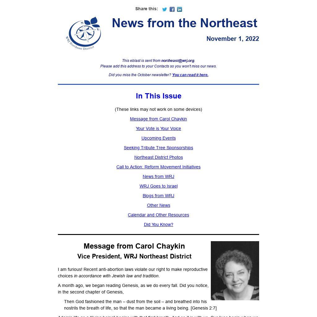 | Donate to the District Make a gift to WRJ Northeast District Fund (NDF) to say thank you, happy birthday, mazel tov, or to send get well wishes or condolences to your family members and friends. An acknowledgment will be emailed to each person whose email address is provided.
