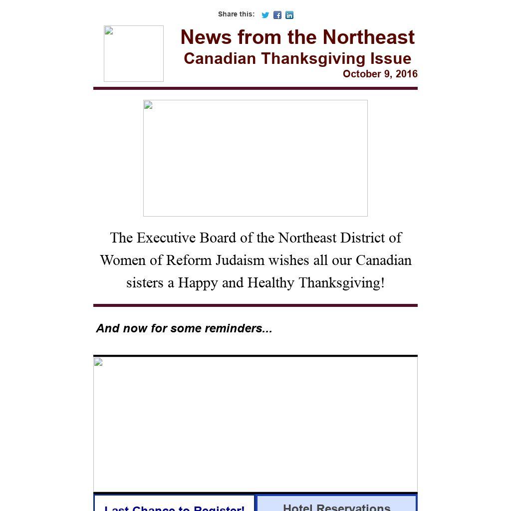 The Executive Board of the Northeast District of Women of Reform Judaism wishes all our Canadian sisters a Happy and Healthy Thanksgiving!