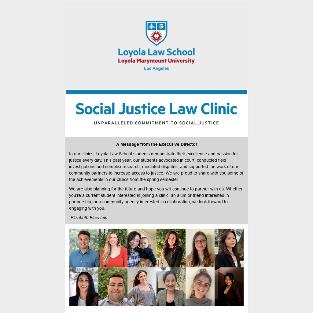 In our clinics, Loyola Law School students demonstrate their excellence and passion for justice every day. This past year, our students advocated in court, conducted field investigations and complex research, mediated disputes, and supported the work of our community partners to increase access to justice. We are proud to share with you some of the achievements in our clinics from the spring semester.