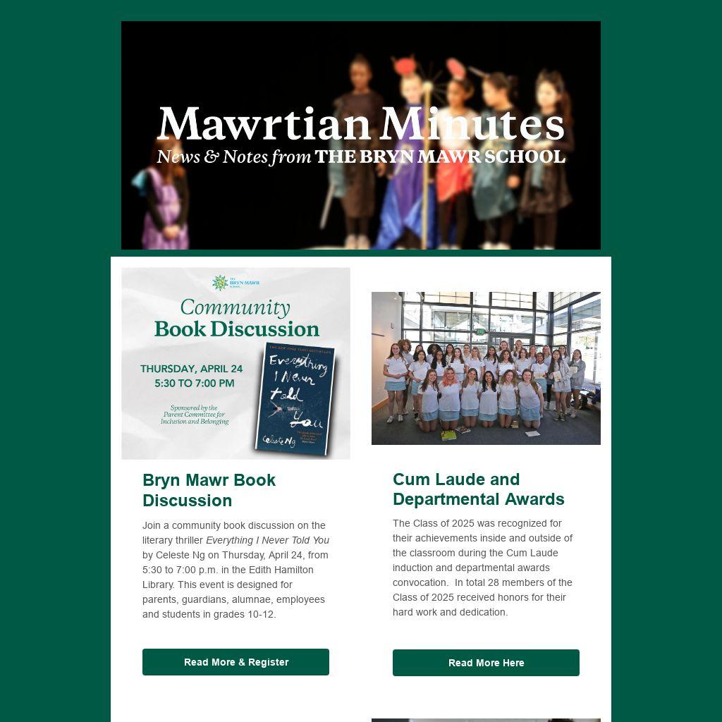 4/30 — Parents are invited to Everyman Theater for a performance of The Mystery of Irma Vep, A Penny Dreadful, tickets to a happy hour and performance are complimentary