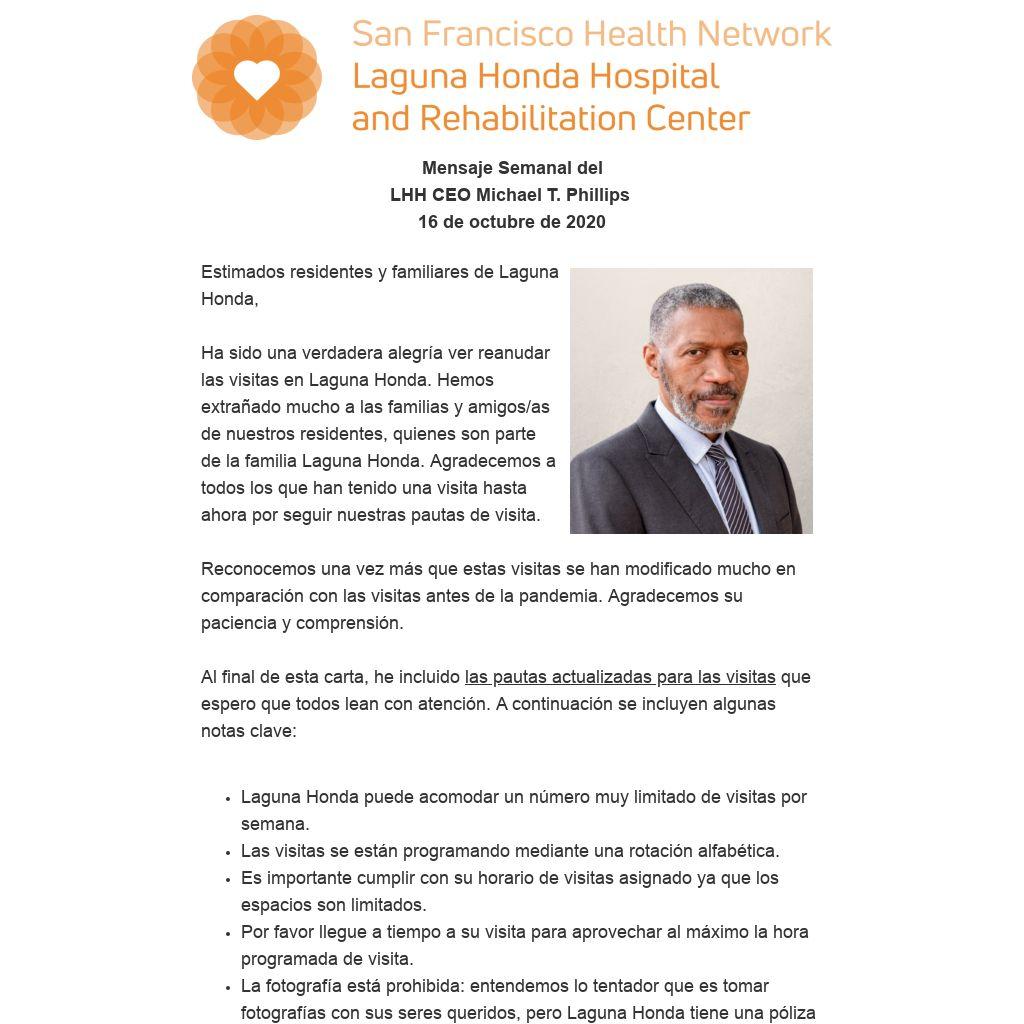 Estimados residentes y familiares de Laguna Honda,