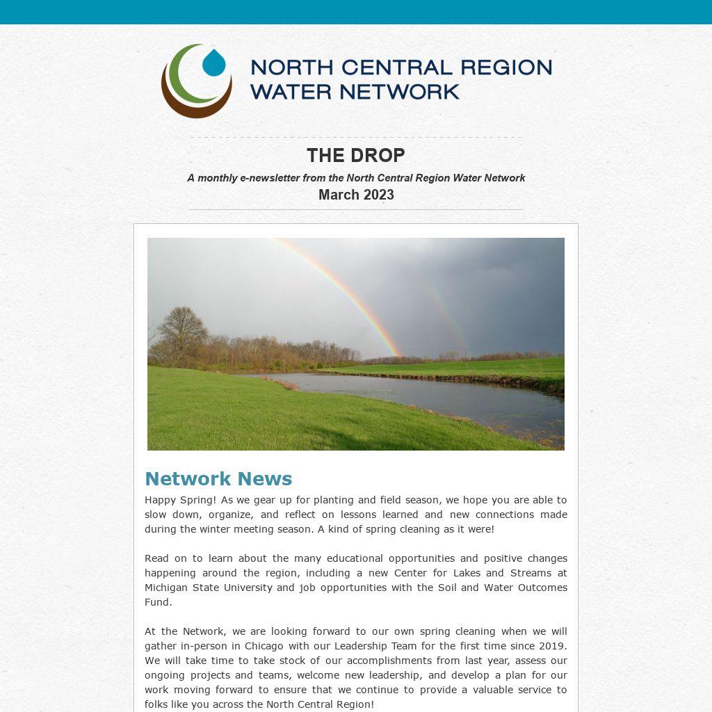 A monthly e-newsletter from the North Central Region Water Network March 2023
