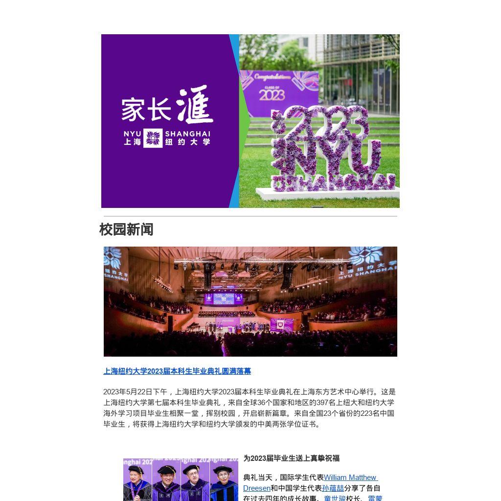 2023届毕业典礼的钟声就要敲响,无论孩子的下一站在哪里,我们都将永远心念同学和队友,情系母校和师长。 祝愿上海纽约大学继续创造辉煌。”