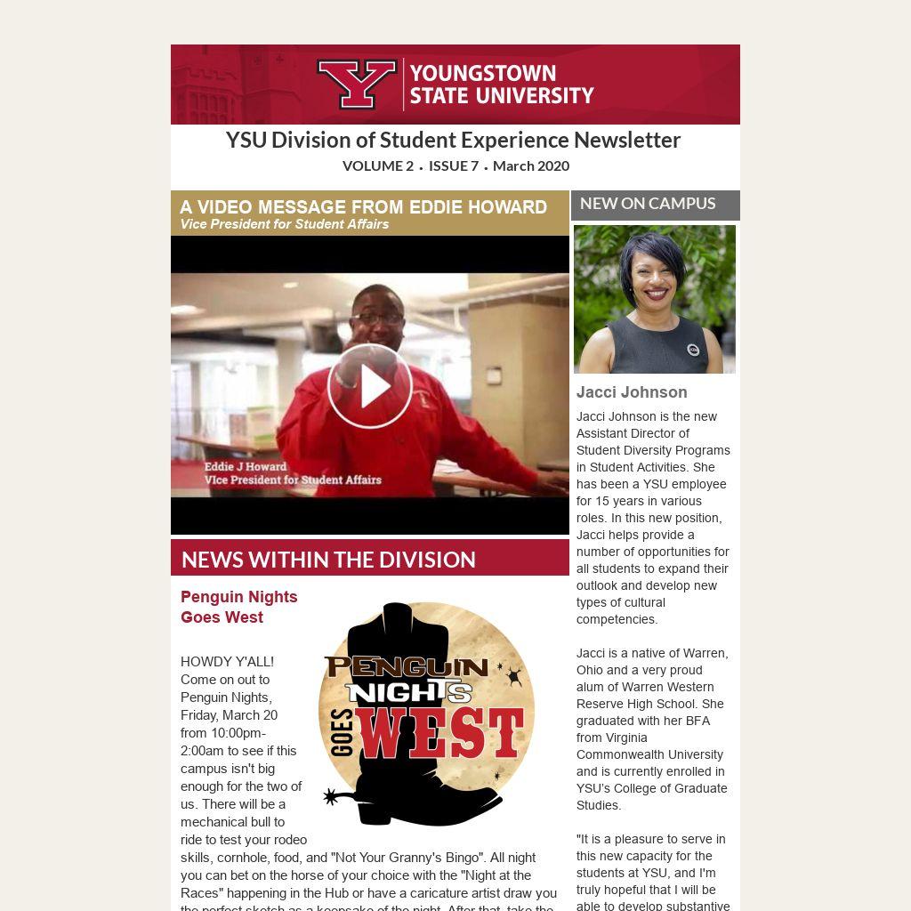 "It is a pleasure to serve in this new capacity for the students at YSU, and I'm truly hopeful that I will be able to develop substantive and fun programs for our students and continue to be a positive influence to the students that I am privileged enough to work with each day."