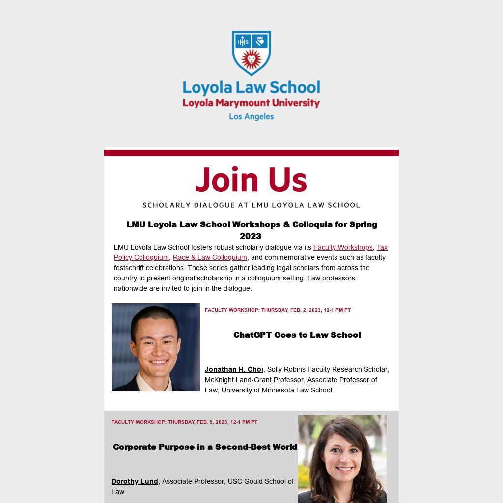 LMU Loyola Law School Workshops & Colloquia for Spring 2023