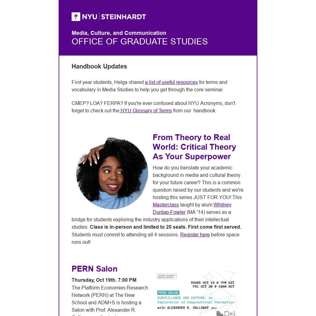 The Steinhardt Writing Center provides reasonable accommodations to people with disabilities. Requests for accommodations for events and services should be submitted at least two weeks before the date of the accommodation needed. Please email Kari Hensley at