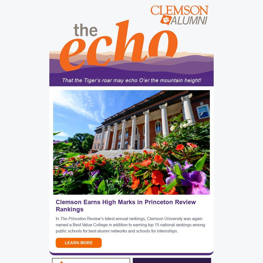 In The Princeton Review’s latest annual rankings, Clemson University was again named a Best Value College in addition to earning top 15 national rankings among public schools for best alumni networks and schools for internships.