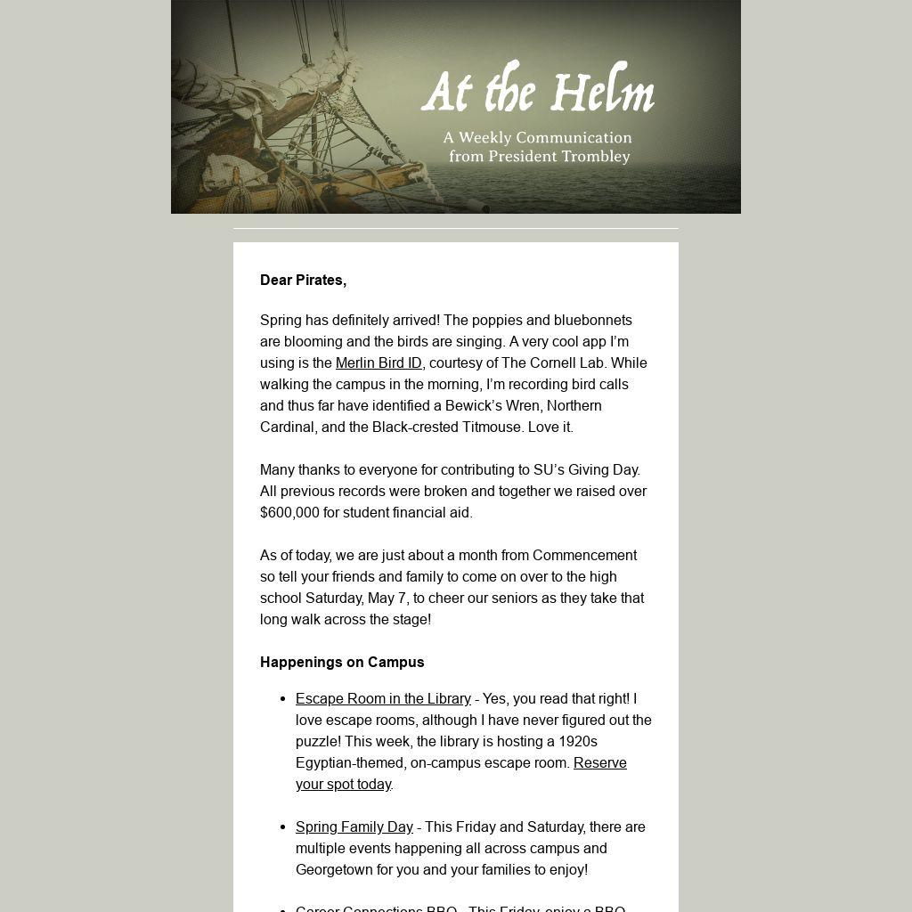 Many thanks to everyone for contributing to SU’s Giving Day. All previous records were broken and together we raised over $600,000 for student financial aid.