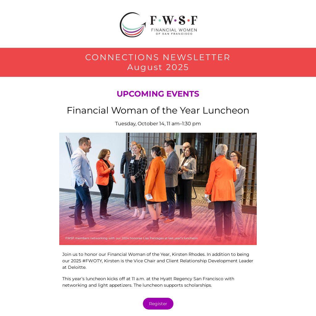 Join us to honor our Financial Woman of the Year, Kirsten Rhodes. In addition to being our 2025 #FWOTY, Kirsten is the Vice Chair and Client Relationship Development Leader at Deloitte.