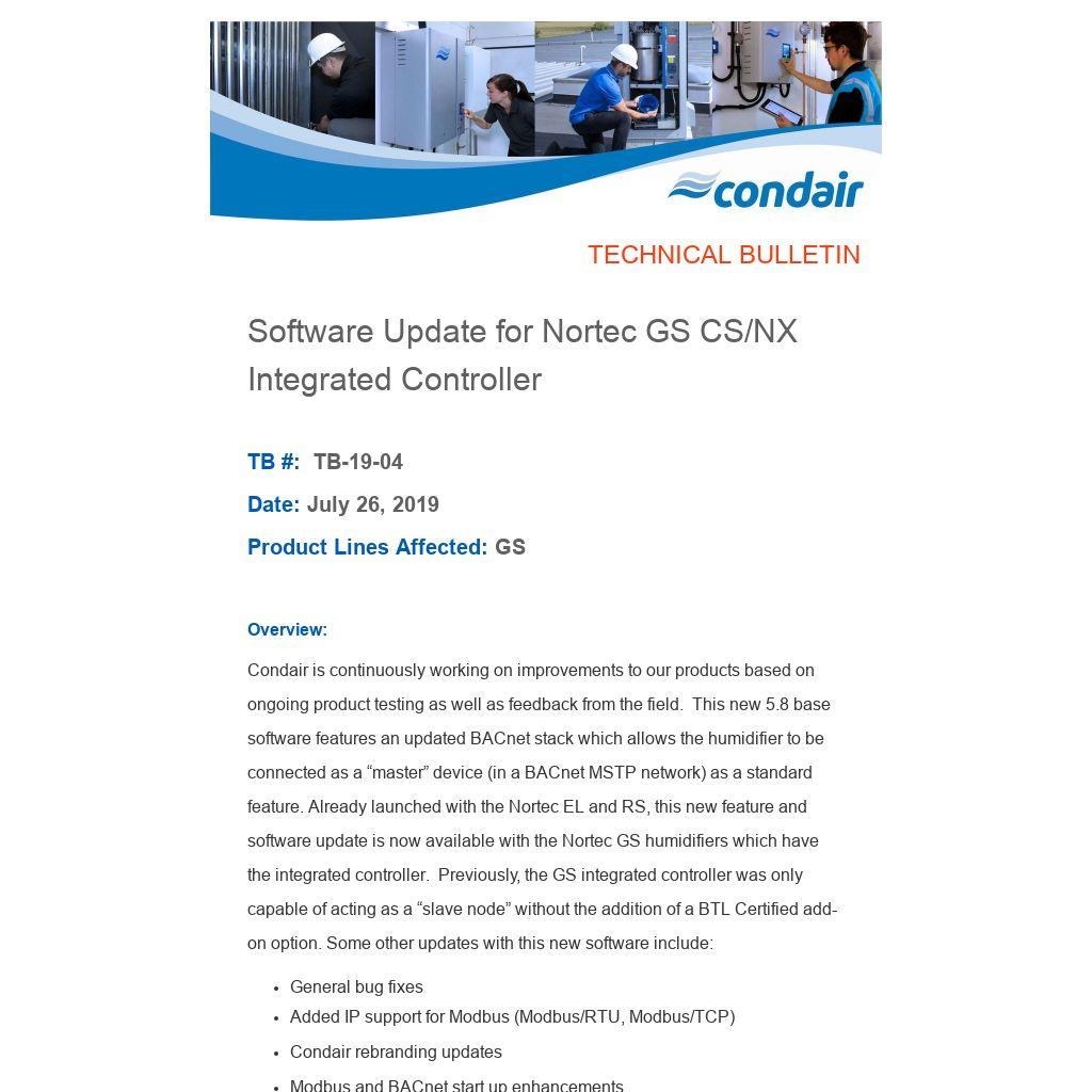 Software Update for Nortec GS CS/NX Integrated Controller