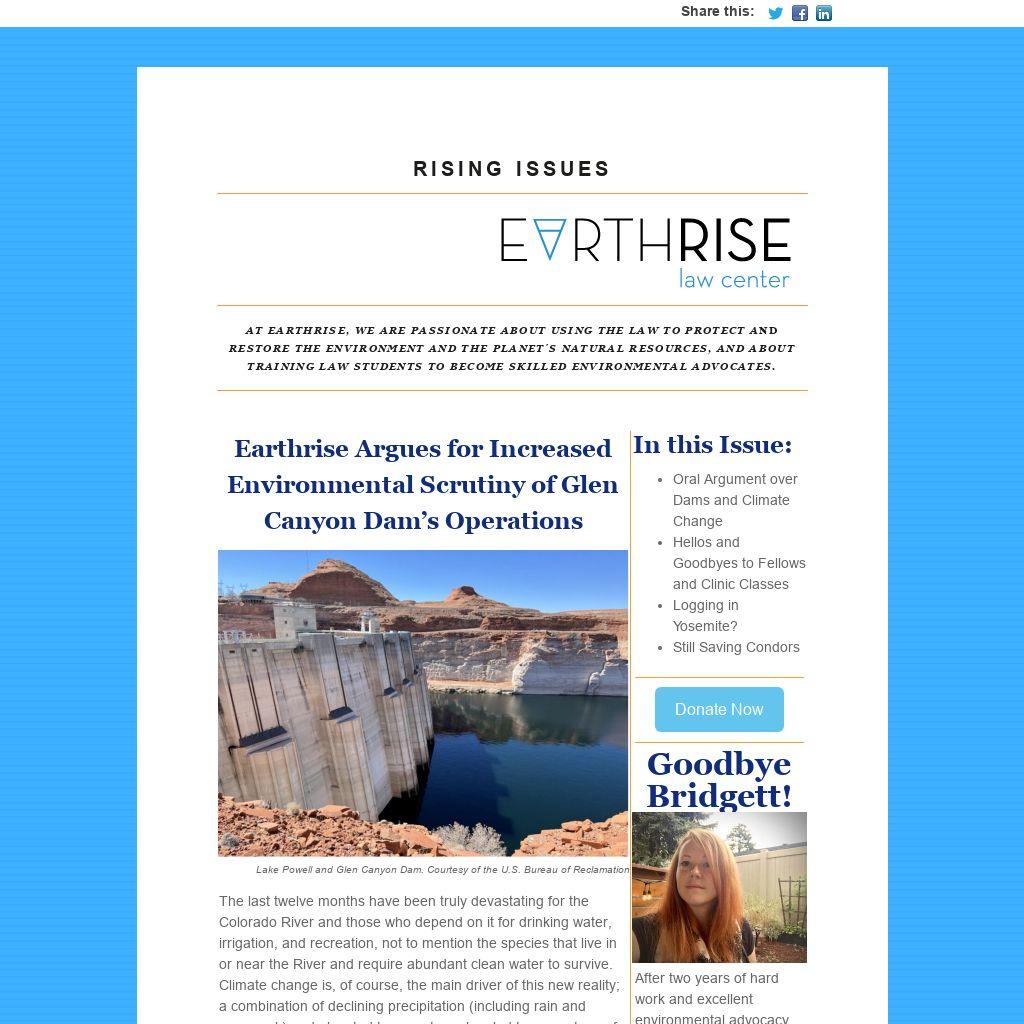 On October 7, 2022, Earthrise attorney and clinical professor Jamie Saul presented oral argument to the U.S. District Court for the District of Arizona on the plaintiffs’ motion for summary judgment. A victory for our clients would result in further NEPA analysis, ideally including the consideration of a new slate of alternatives that reflect the impending loss of hydropower generation at Glen Canyon Dam and better protect downstream resources in this new era of climate change. A decision by the Court is expected by the end of the year.