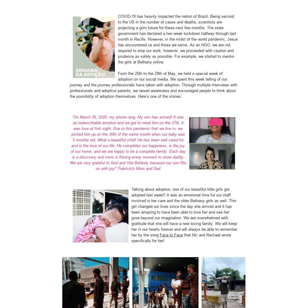 At the beginning of May, we were so blessed by the local Recife military who dropped off food packages. We were able to hand them out to our friends in the communities, woman who left prostitution and even some of our staff to help everyone get through these months. Many of our friends were struggling with basic necessities. They could not be happier to receive a little bit extra to ensure there is a meal on the table. It is amazing to be able to help out the people we have been building relationships with in these practical forms as well.