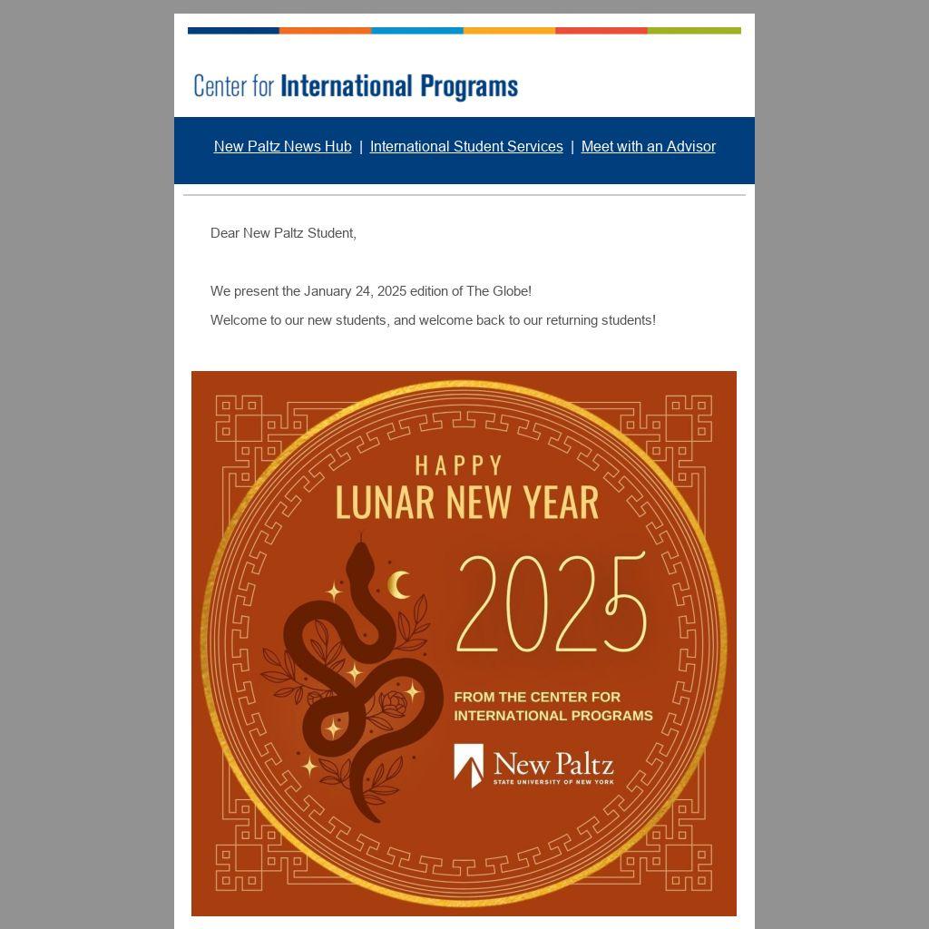 The Globe is our International Student Newsletter. It is usually sent bi-weekly (every other week) on Fridays. In the Globe you will find announcements from the International Student Programs office. Important reminders, information on events and more. As always, please read all information under Announcements and Reminders carefully as it may pertain to policies, mandatory requirements, or other information necessary for International Students.
