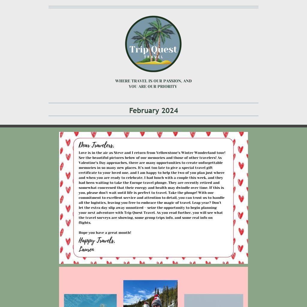 I am Lauren Williams, owner of Trip Quest Travel Services for the past nine years. Moving from three decades in education to becoming a travel consultant has caused me to shift from “The Doctor of Education” to “The Doctor of Travel.” My clients are often just like me – they want a rejuvenating vacation that teaches them about the world and the cultures around them. I love beautiful scenery, exploring new places, and learning something new every day! Aside from travel, I stay busy with my husband, Steve, who has joined me in the travel business, and our four children and thirteen grandchildren. Being active in the church and in our community feeds our souls as well. I love to play pickleball and bridge when I am not helping clients plan that perfect trip! Because our world is so much smaller now, I am happy to work with clients wherever they might live…but by referral only. Let me know if you have friends or family who would like to be added to my monthly newsletter list!  Also, let me know if there is something you’d like to know more about!