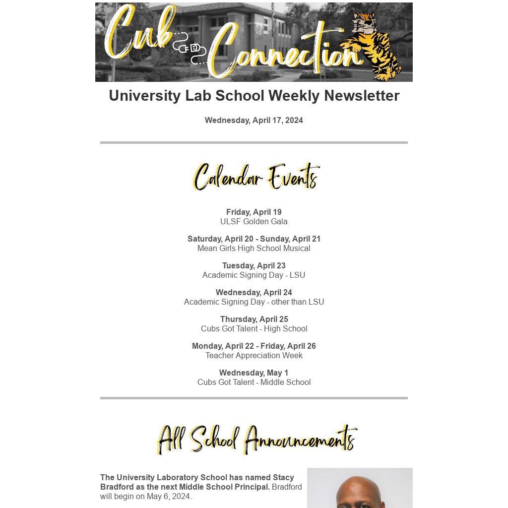 University Lab School Weekly Newsletter |