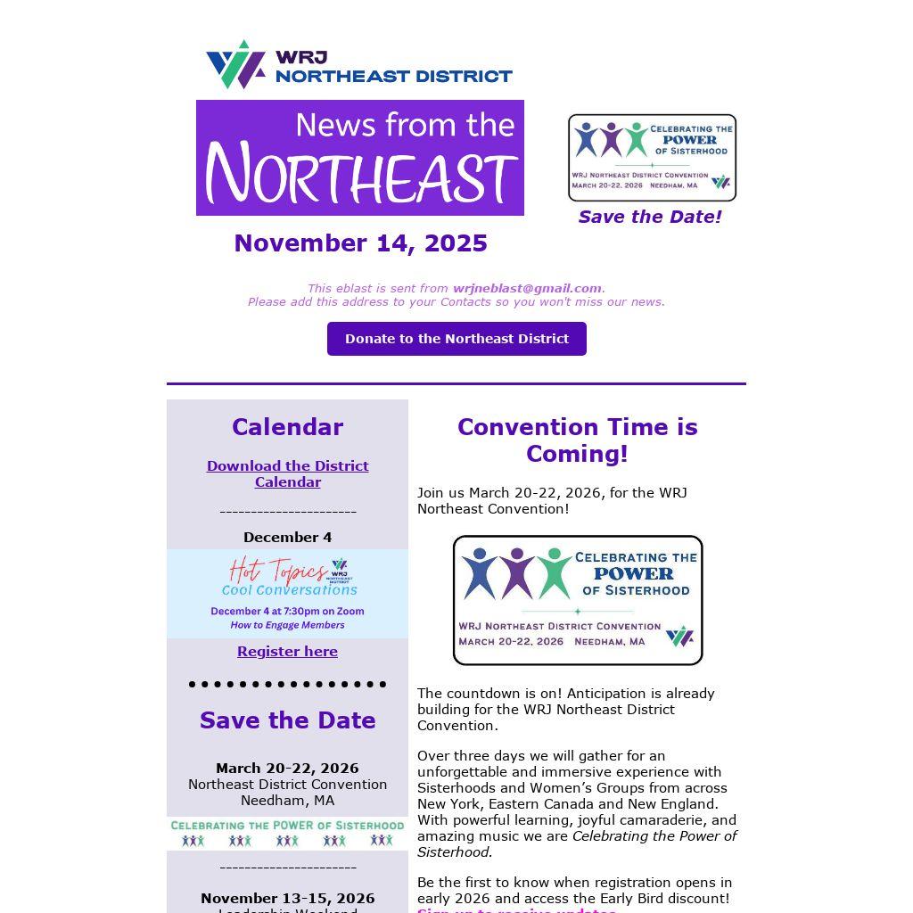 The countdown is on! Anticipation is already building for the WRJ Northeast District Convention.