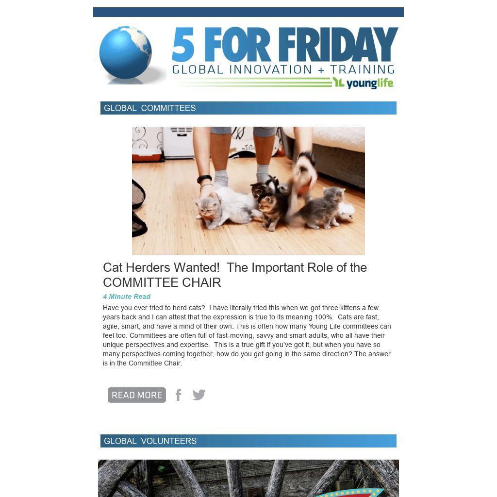 In the same way we are incarnational ministers, let’s strive to be incarnational trainers for the linchpins in our ministries. Volunteer Team Leaders are one of the precious resources of the YL ministry and deserve our best.