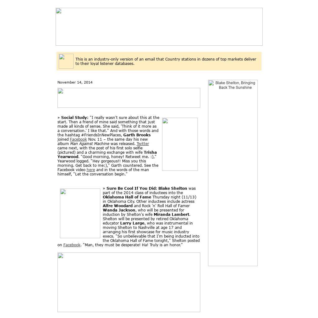 | This is an industry-only version of an email that Country stations in dozens of top markets deliver