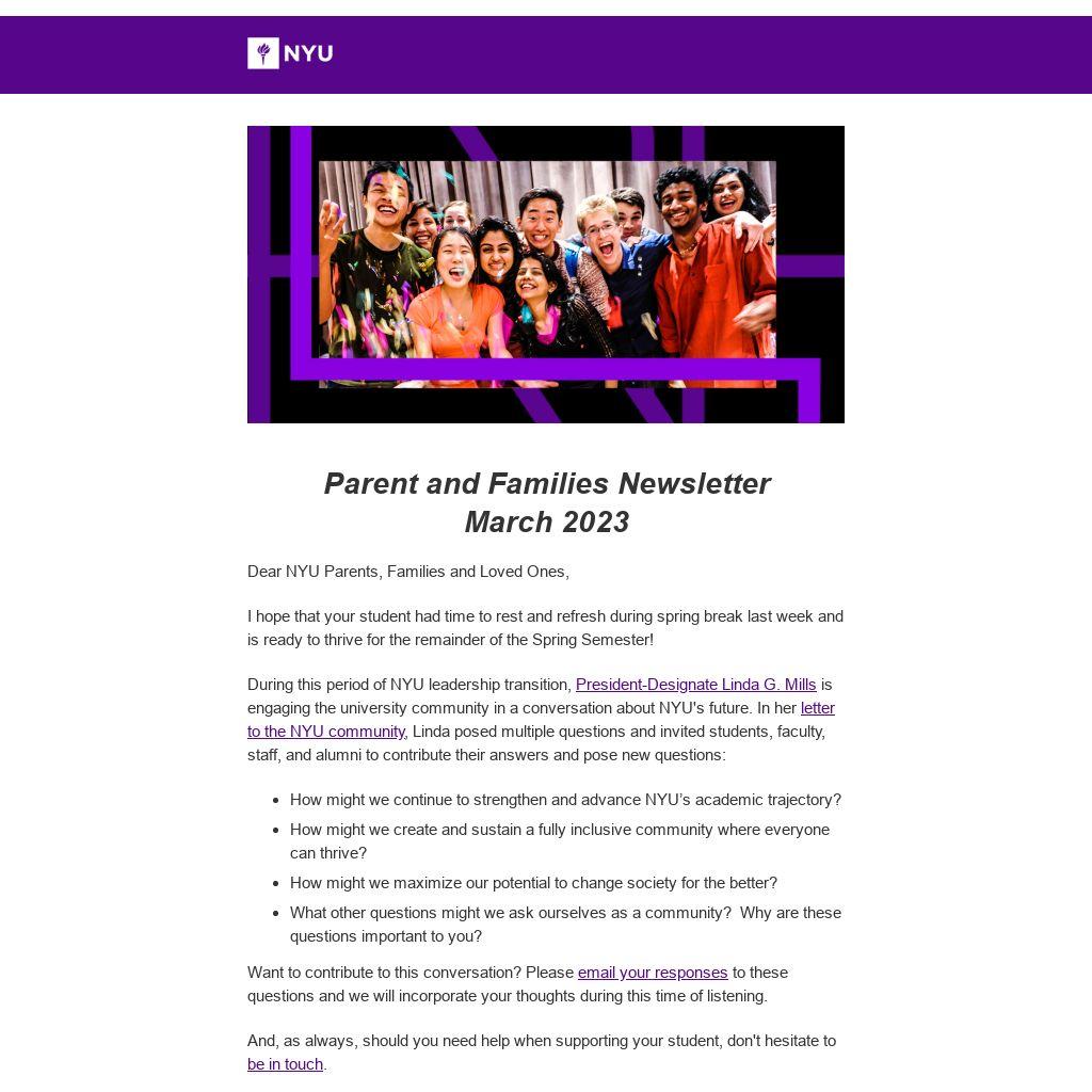 Dear NYU Parents, Families and Loved Ones,