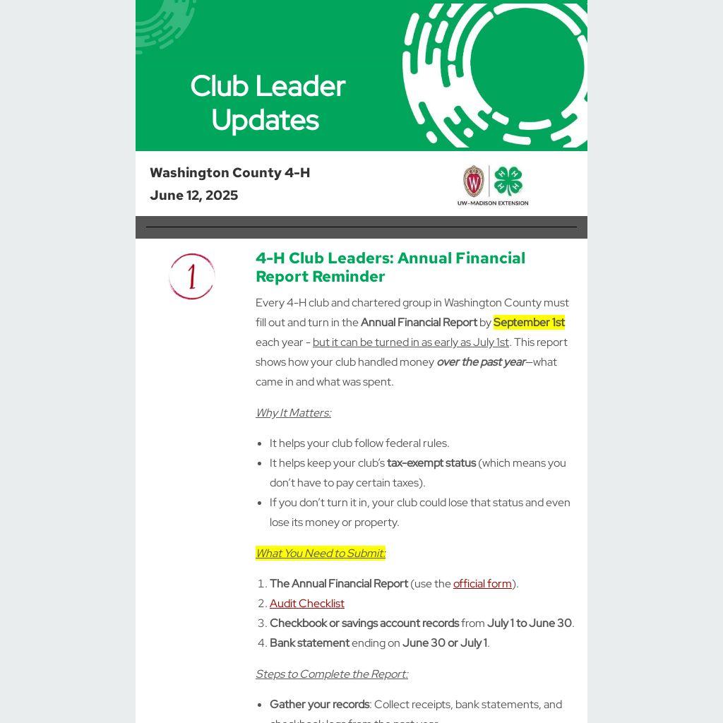 These events are led by a 4-H Educator and need teen volunteers to help them run smoothly. Encourage your club teens to sign up today! 4-H Day Camp Volunteer Sign Up