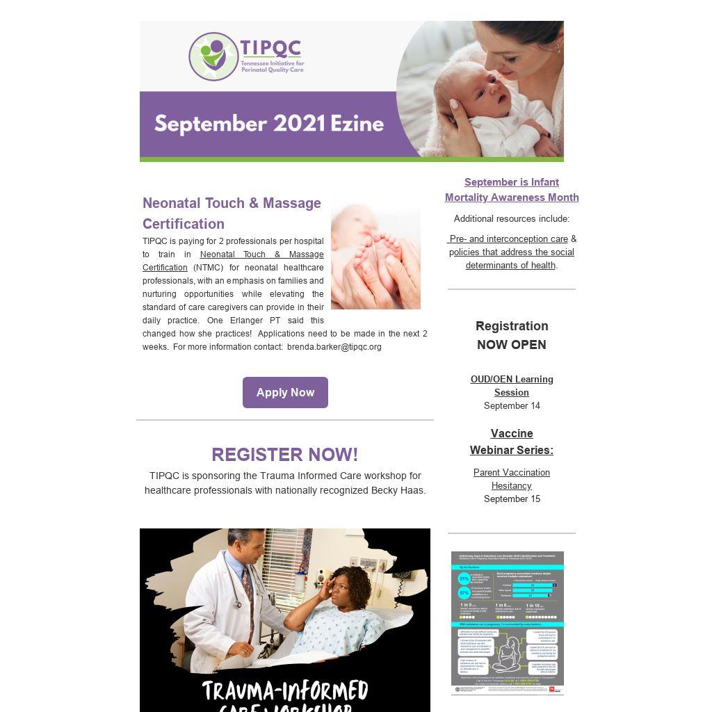 Over 80 attendees from 16 hospitals participated in the Severe Maternal Hypertension Learning Session on August 31. Highlights included Patient Chelsea Battenberg, the California CMQCC Journey, and Methodist South and Blount sharing resources & successes. Racial Disparities were addressed as well through data analysis, case reviews & root cause analysis.