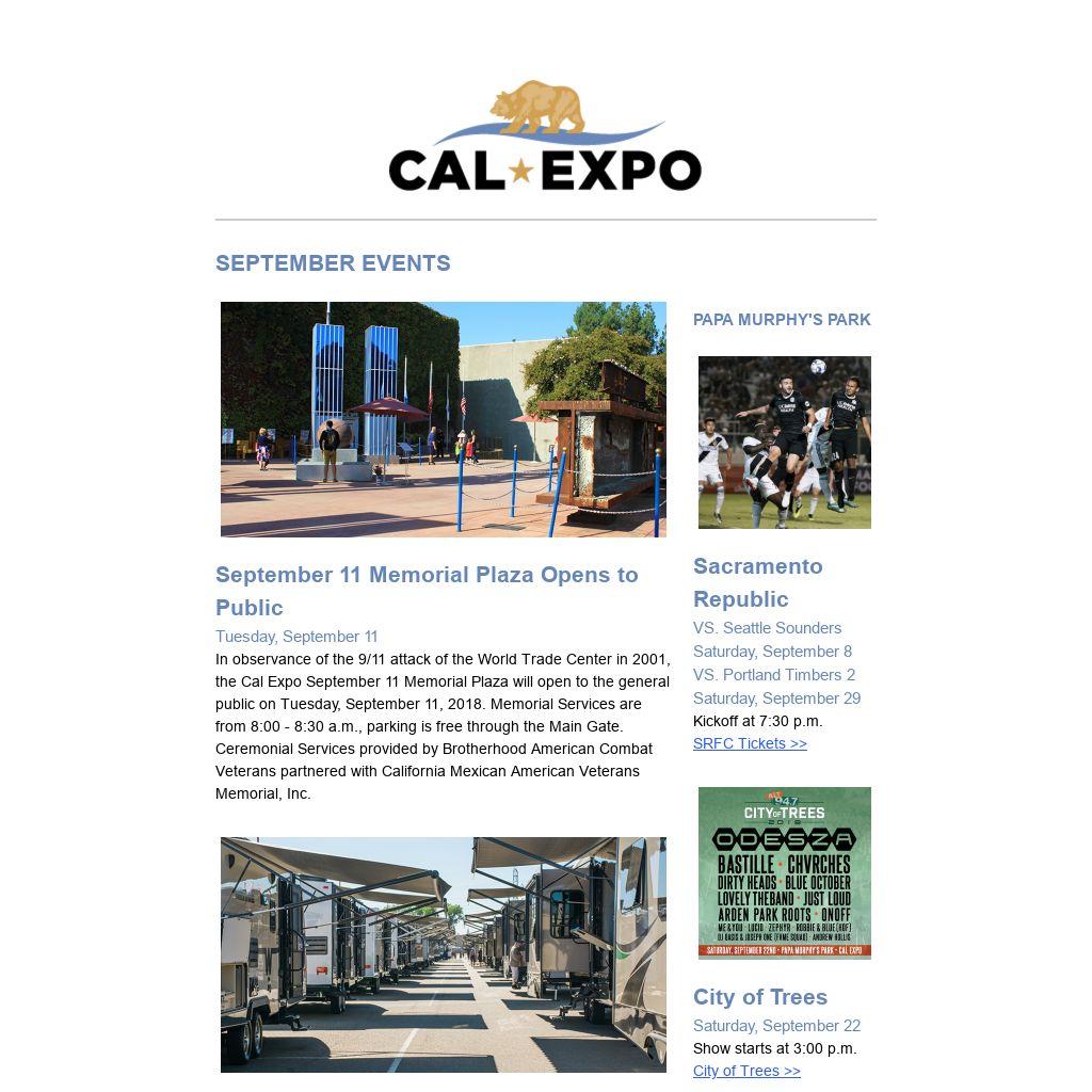 In observance of the 9/11 attack of the World Trade Center in 2001, the Cal Expo September 11 Memorial Plaza will open to the general public on Tuesday, September 11, 2018. Memorial Services are from 8:00 - 8:30 a.m., parking is free through the Main Gate. Ceremonial Services provided by Brotherhood American Combat Veterans partnered with California Mexican American Veterans Memorial, Inc.
