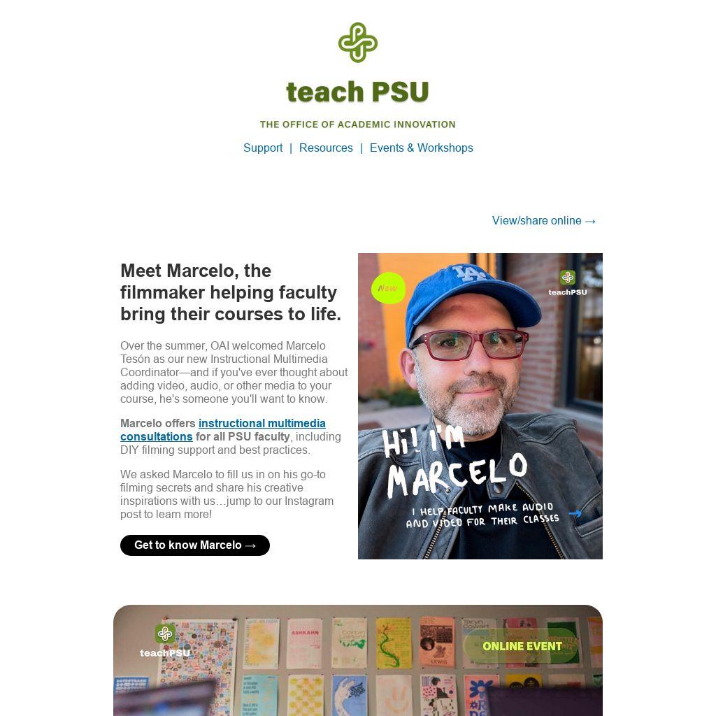 Marcelo offers instructional multimedia consultations for all PSU faculty, including DIY filming support and best practices.