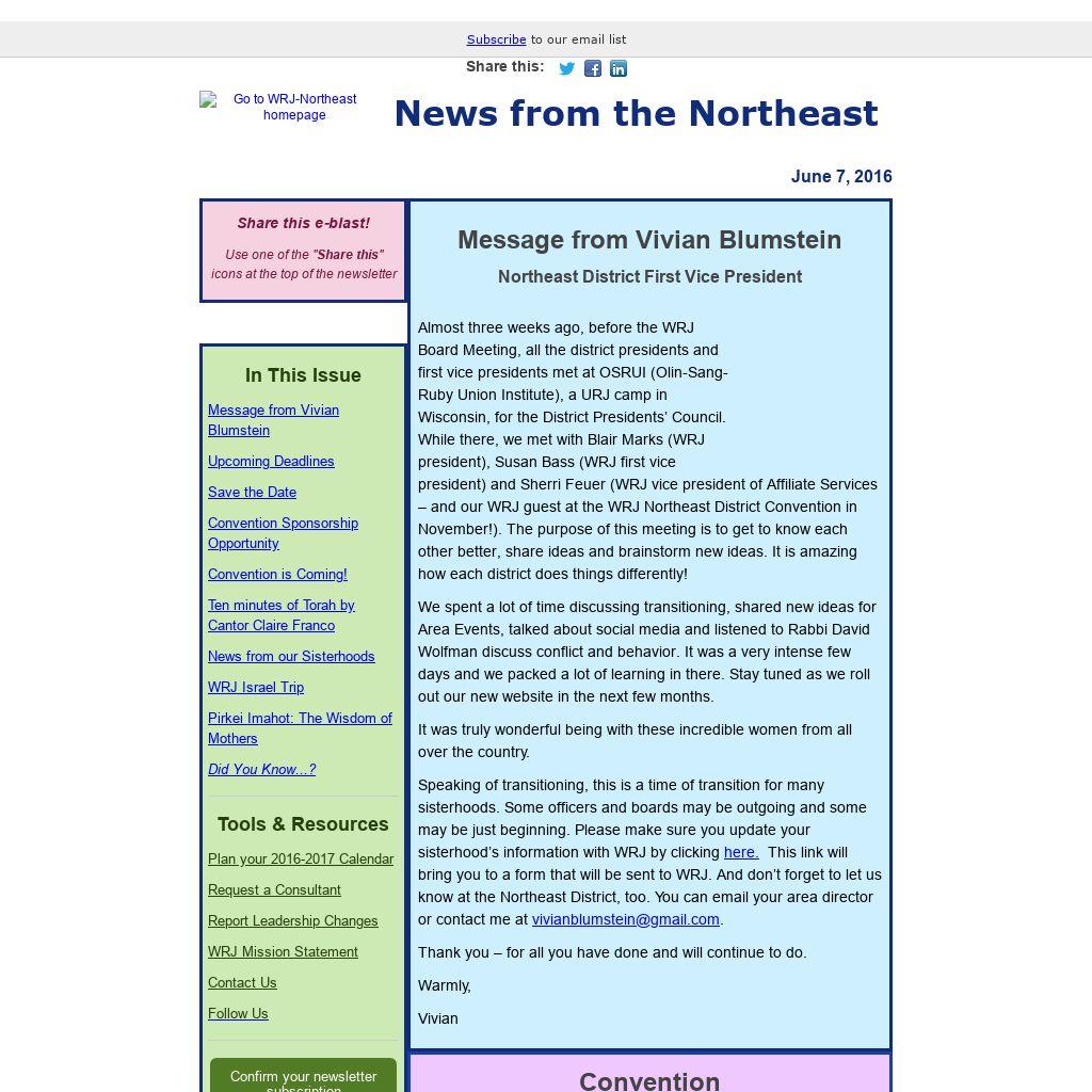 Using Gmail's Tab Layout? Drag this message to your Primary inbox so you won't miss any e‑blasts from WRJ Northeast District