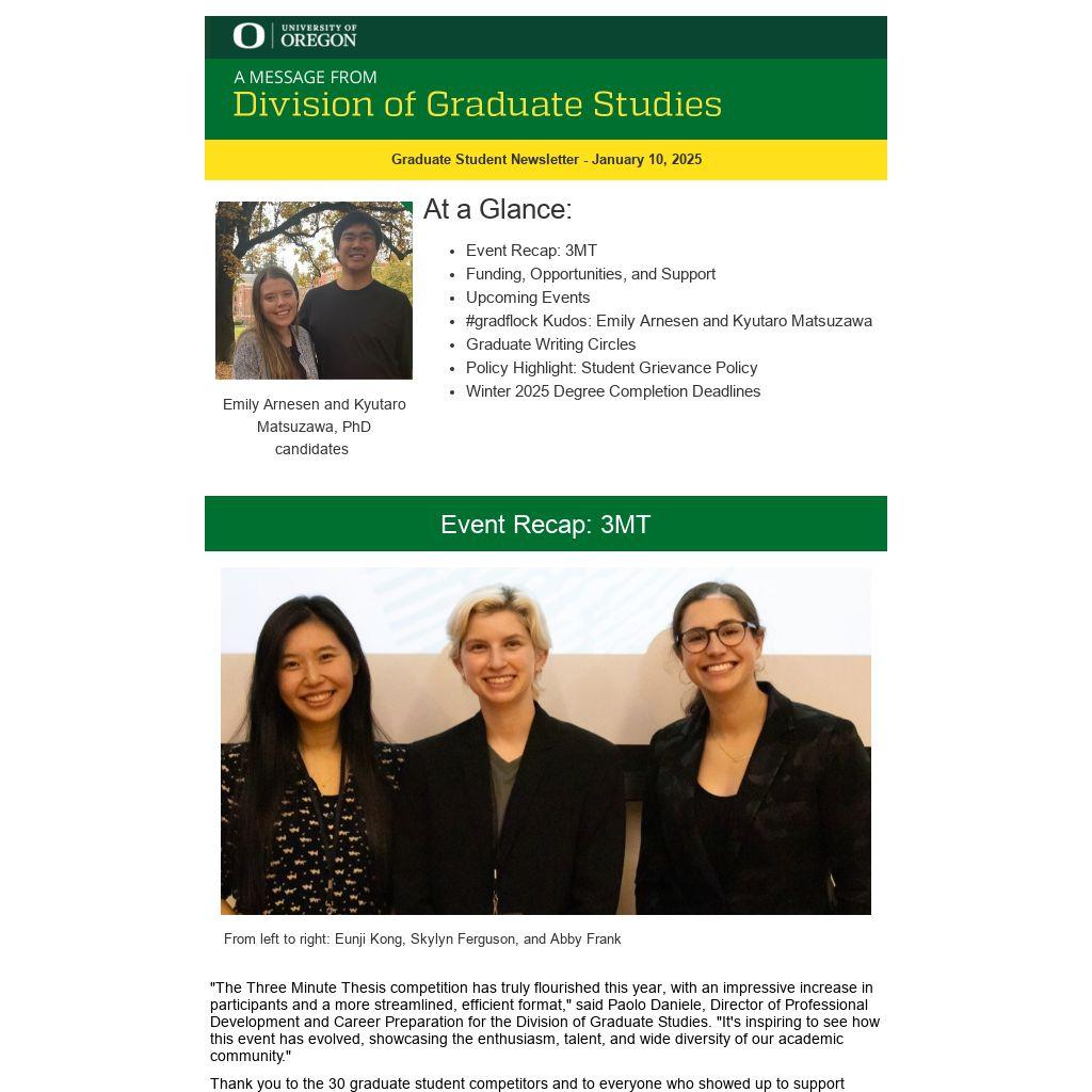 Graduate students are encouraged to pursue prestigious external fellowships that offer academic and research funding, time to focus on your reserach without work obligations, and unique professional development opportunities. Most external fellowships cover some, but not all, of the tuition, insurance, stipend, and fees that the UO provides to trainee positions. Therefore, you may need to request institutional funding for tuition, stipend, mandatory fees, and insurance expenses not covered by the fellowship.