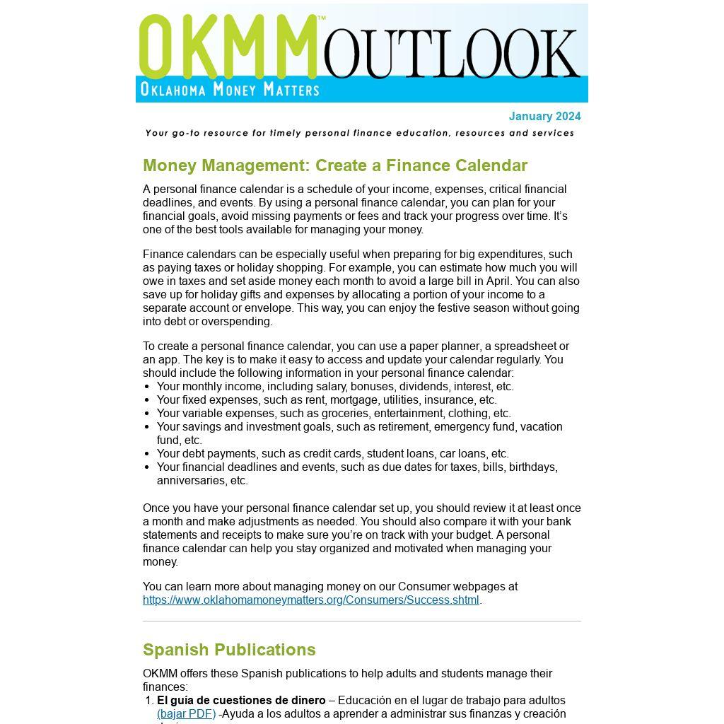 You can learn more about managing money on our Consumer webpages at https://www.oklahomamoneymatters.org/Consumers/Success.shtml.