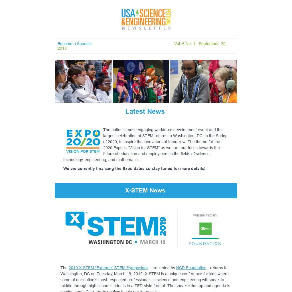The nation's most engaging workforce development event and the largest celebration of STEM returns to Washington, DC, in the Spring of 2020, to inspire the innovators of tomorrow! The theme for the 2020 Expo is "Vision for STEM" as we turn our focus towards the future of education and employment in the fields of science, technology, engineering, and mathematics.