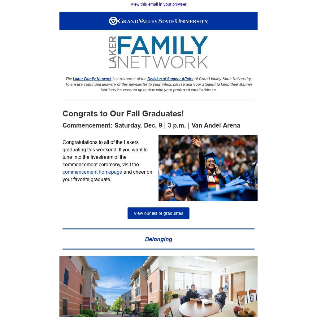 The Laker Family Network is a resource of the Division of Student Affairs of Grand Valley State University.