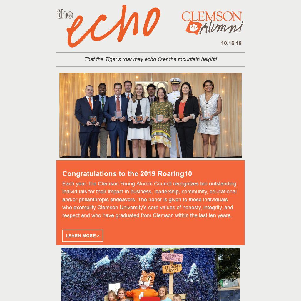 Each year, the Clemson Young Alumni Council recognizes ten outstanding individuals for their impact in business, leadership, community, educational and/or philanthropic endeavors. The honor is given to those individuals who exemplify Clemson University’s core values of honesty, integrity, and respect and who have graduated from Clemson within the last ten years.