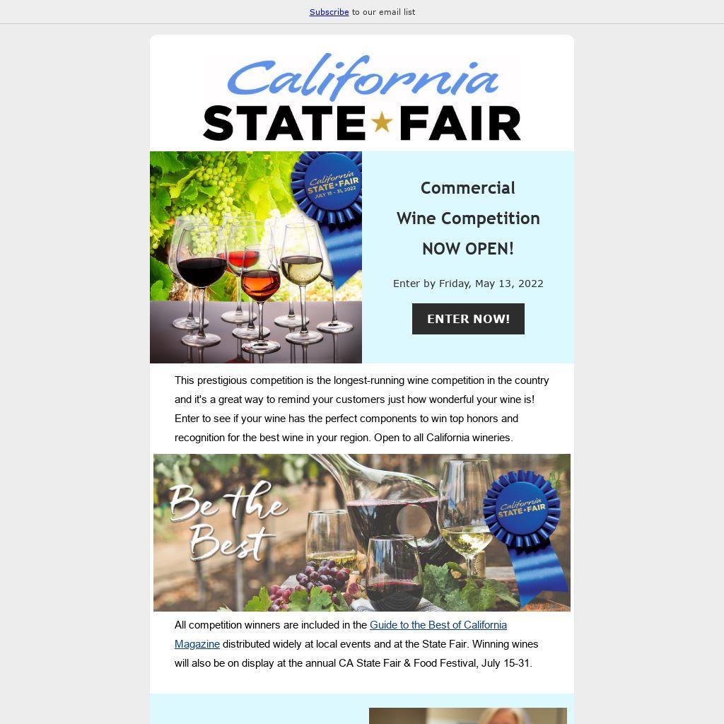 All competition winners are included in the Guide to the Best of California Magazine distributed widely at local events and at the State Fair. Winning wines will also be on display at the annual CA State Fair & Food Festival, July 15-31.